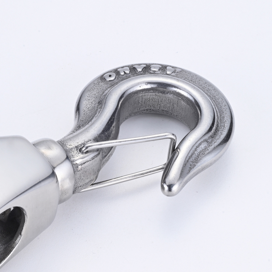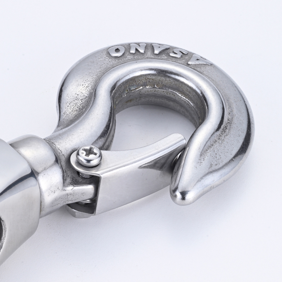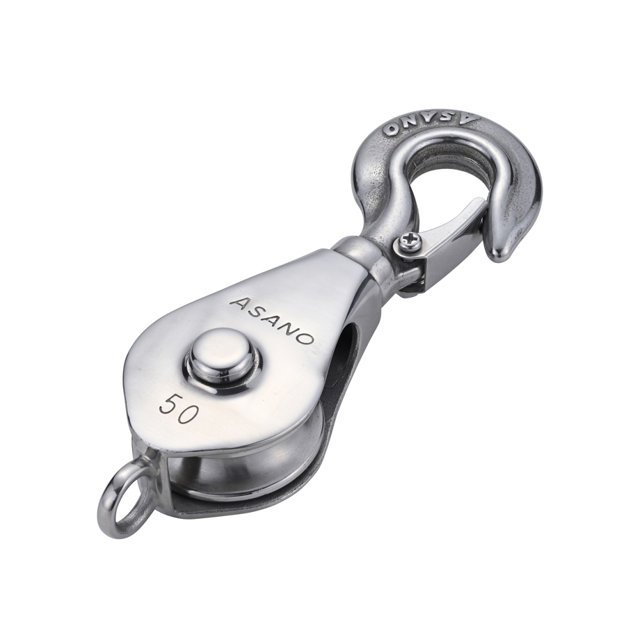 ※材質:SCS14(SUS316相当) シーブピン、スイベルピン=SUS316 フック、ばね、ハズレ止め金具=SUS304