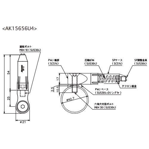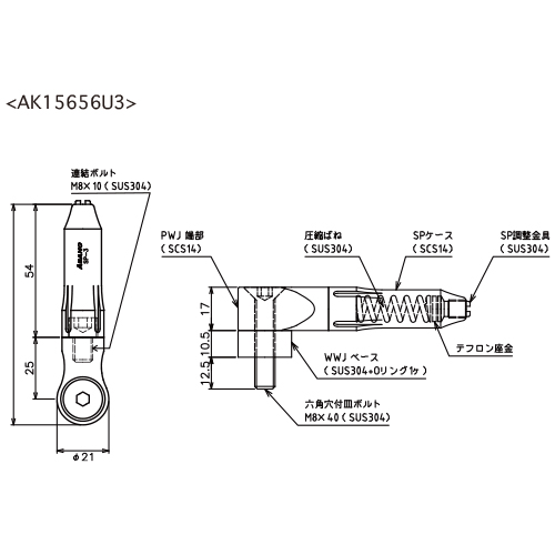※材質:SCS14(SUS316相当) 圧縮ばね/ばね調整金具/WWJベース/ねじ=SUS304