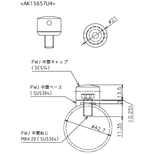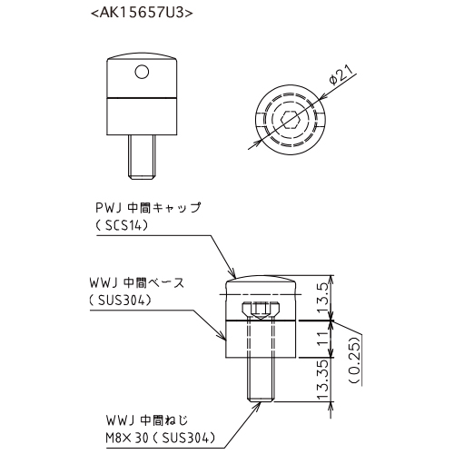 ※材質:SCS14(SUS316相当) WWJ中間ベース/ねじ=SUS304