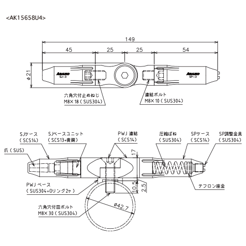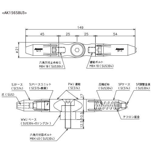 ※材質:SCS14(SUS316相当) 圧縮ばね/ばね調整金具/WWJベース/ねじ=SUS304