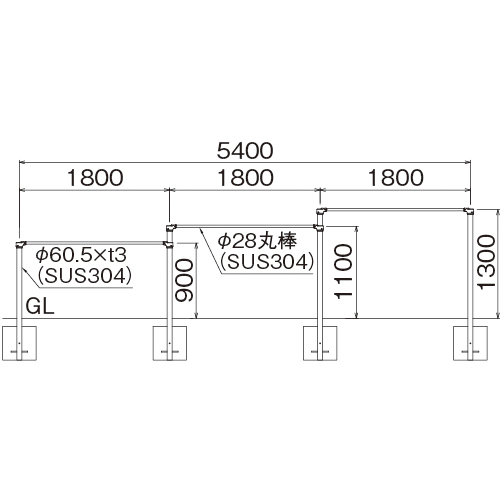 ※鉄棒の高さと支柱間ピッチはご要望により別途制作いたします。