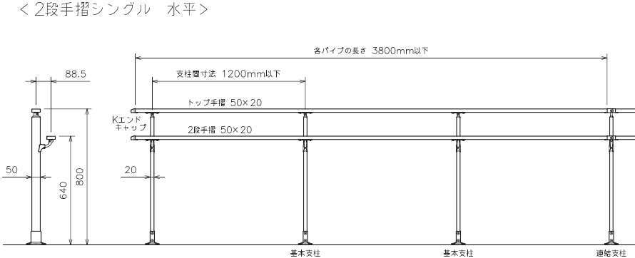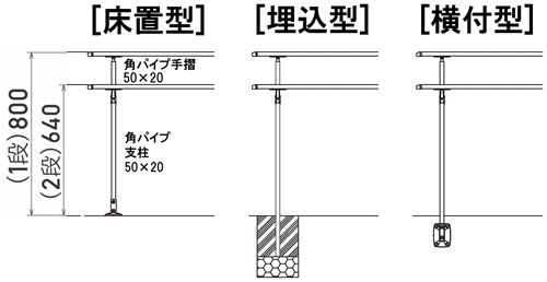 [角パイプ支柱 高さ800mm仕様 / 1,100mm仕様]