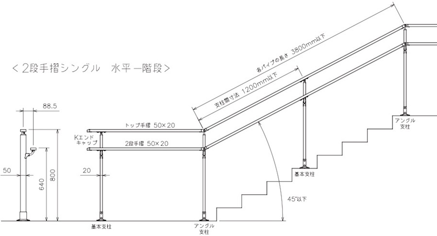 ●手摺はトップ手摺/2段シングル/2段ダブルから、