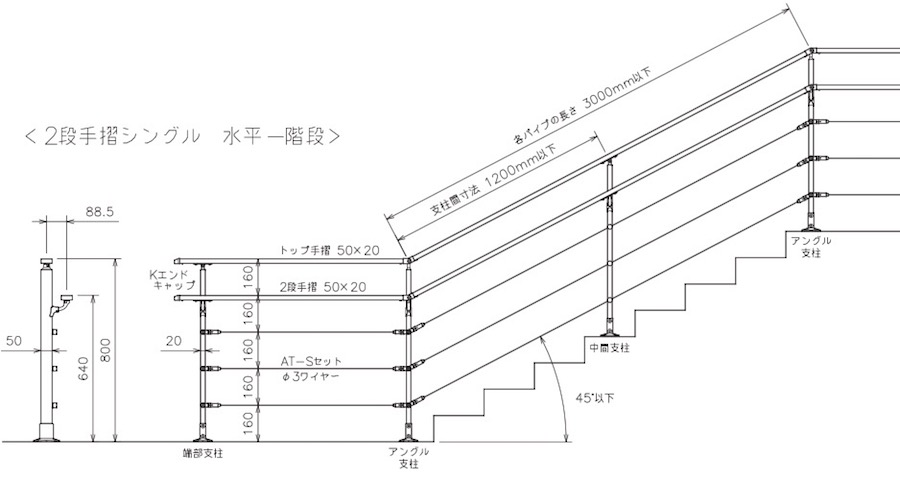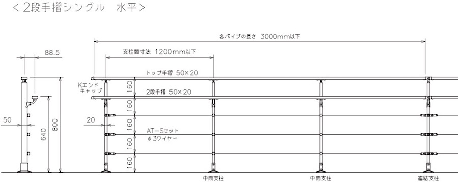 ●手摺はトップ手摺/2段シングル/2段ダブルから、