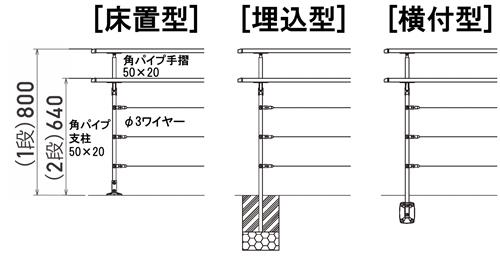 ●支柱と手摺に角パイプを採用したワイヤー手摺です。