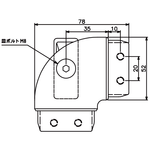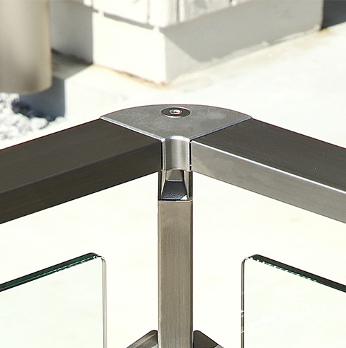 角パイプで構成されているステンレス手摺[AR-K]のトップベースです。