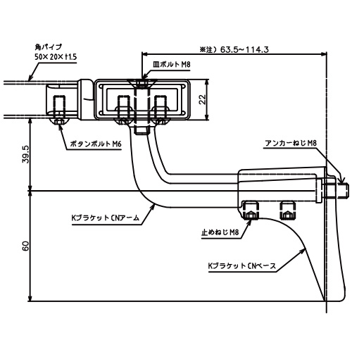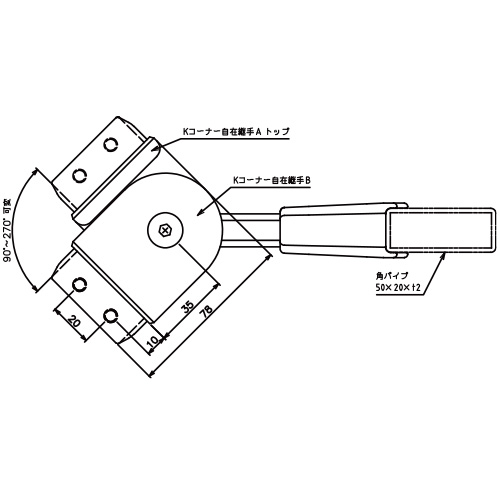 角パイプで構成されているステンレス手摺[AR-K]のブラケットです。 ※注)角度により、短くカットする必要があります。
