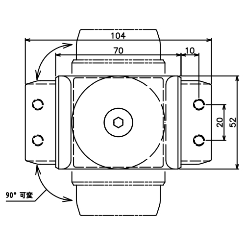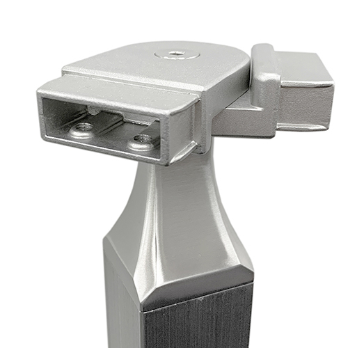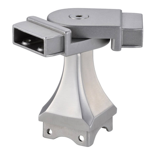 50×50の角パイプ支柱で構成されているステンレス手摺[AR-K50]のトップベースです。 手摺の傾斜角度は45°まで可能。