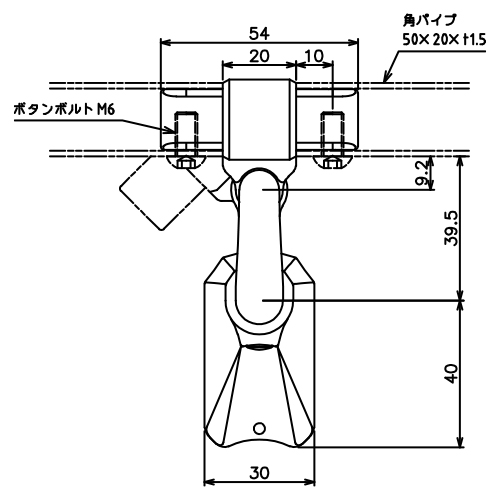 50×50の角パイプ支柱で構成されているステンレス手摺[AR-K50]のブラケットです。 手摺の傾斜角度は45°まで可能です。 ※材質: