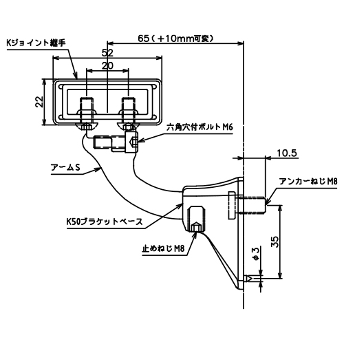 ※材質:特殊ステンレス ねじ類=SUS304 アームベース=SCS14(SUS316相当)