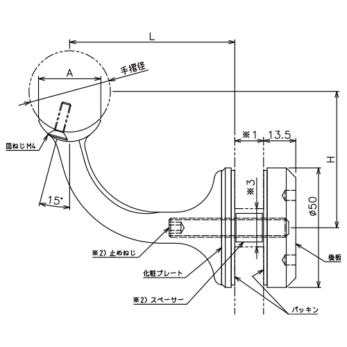 ※2: 低頭ボルトとスペーサーの長さは強化ガラスの厚みによって異なります。