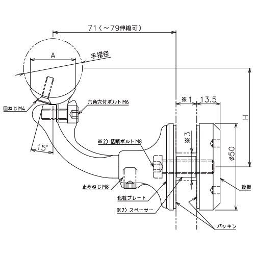 ※2: 低頭ボルトとスペーサーの長さは強化ガラスの厚みによって異なります。
