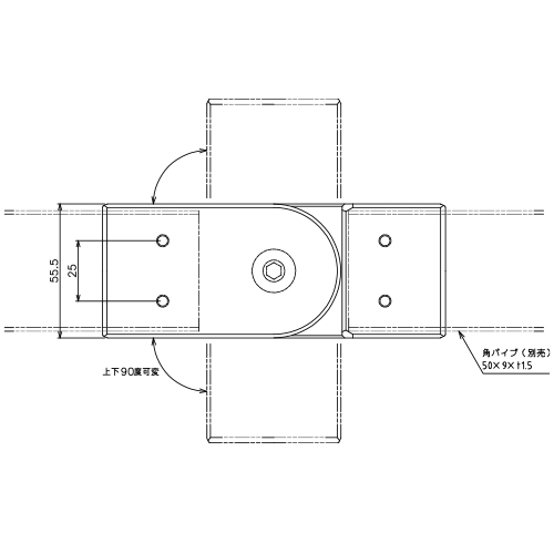 フラットバー支柱で構成されたステンレス手摺[AR-FB]のジョイントです。