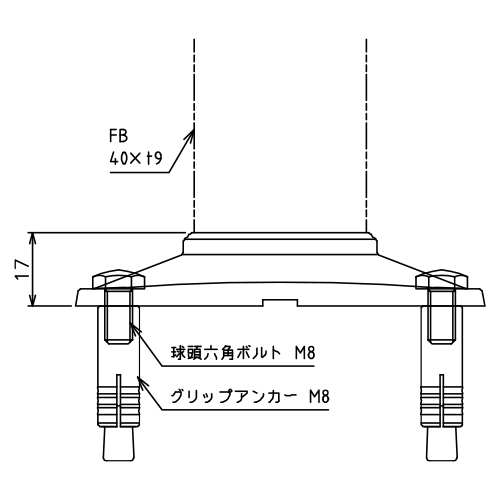 フラットバー支柱で構成されたステンレス手摺[AR-FB]のボトムベースです。 ※フラットバー支柱の取付は溶接で固定してください。
