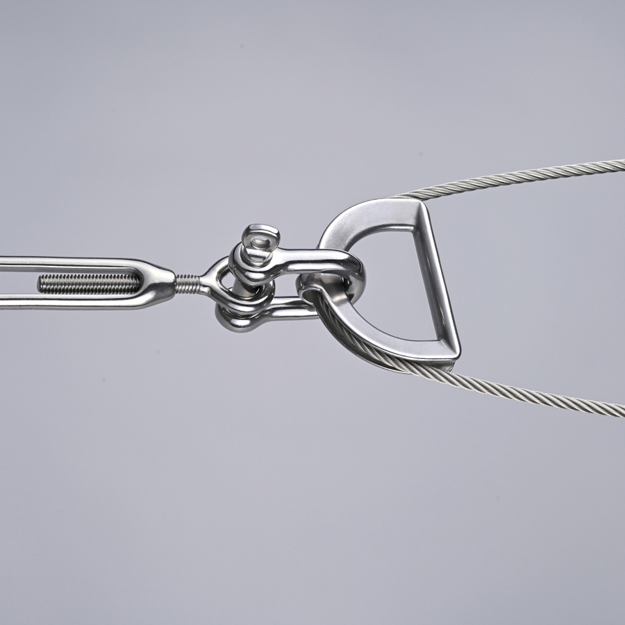 支柱への連結は、シャックル、ターンバックル、アイボルトなどをご使用ください。