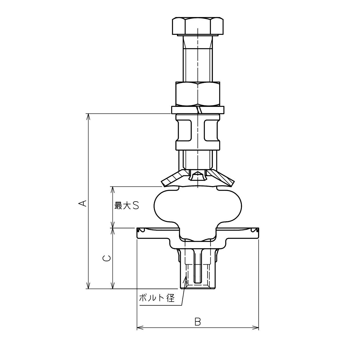 寸切りボルトを連結し下端にアイナットを取り付けて、 ワイヤーを通すことにより吊り天井に対応できます。