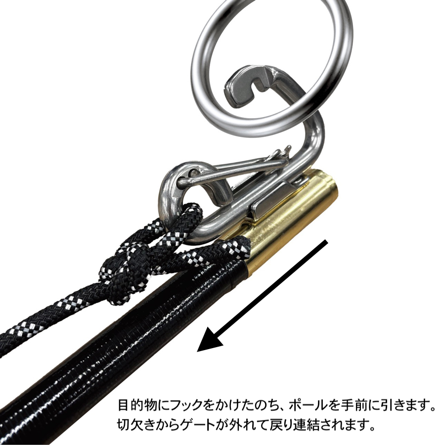 これにより、離れた位置からでも、目的物とフックをスムーズに連結することが可能。